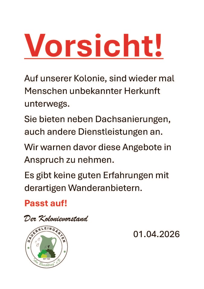 Vielleicht erfolgt über diese Seite ja auch ein erster Kontakt zu uns und unserem Kleingartenverein.