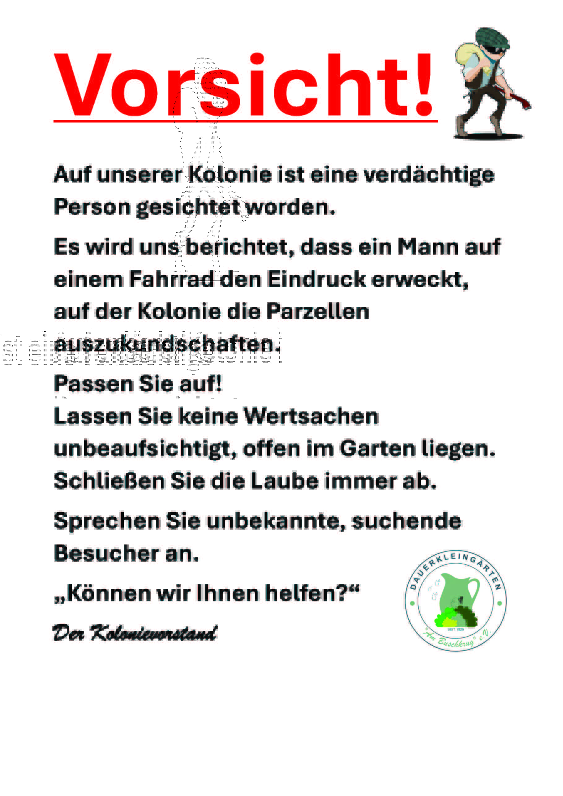 Sie erreichen den Vorstand ausschließlich per E-Mail an: kga@kolonieambuschkrug.de