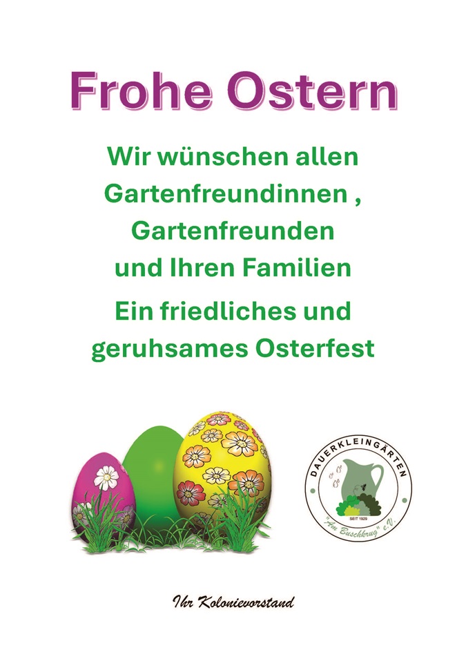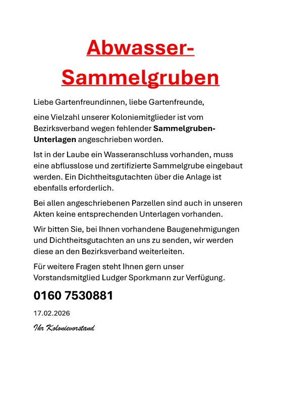 Vielleicht erfolgt über diese Seite ja auch ein erster Kontakt zu uns und unserem Kleingartenverein.