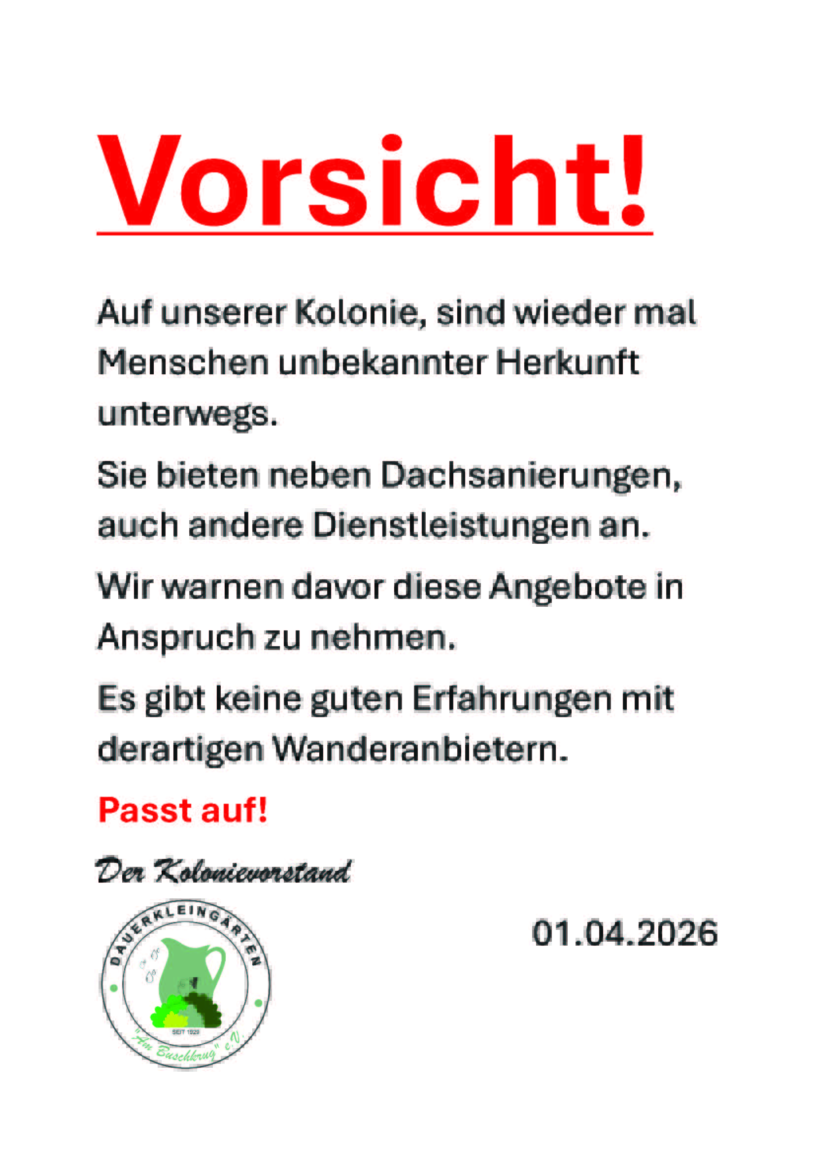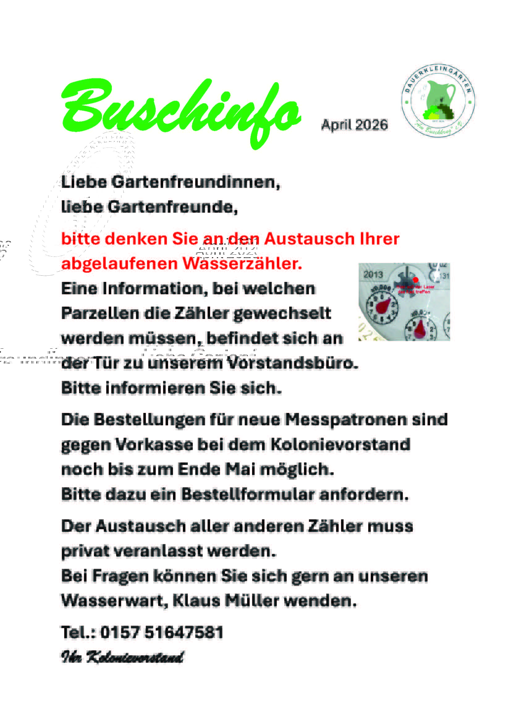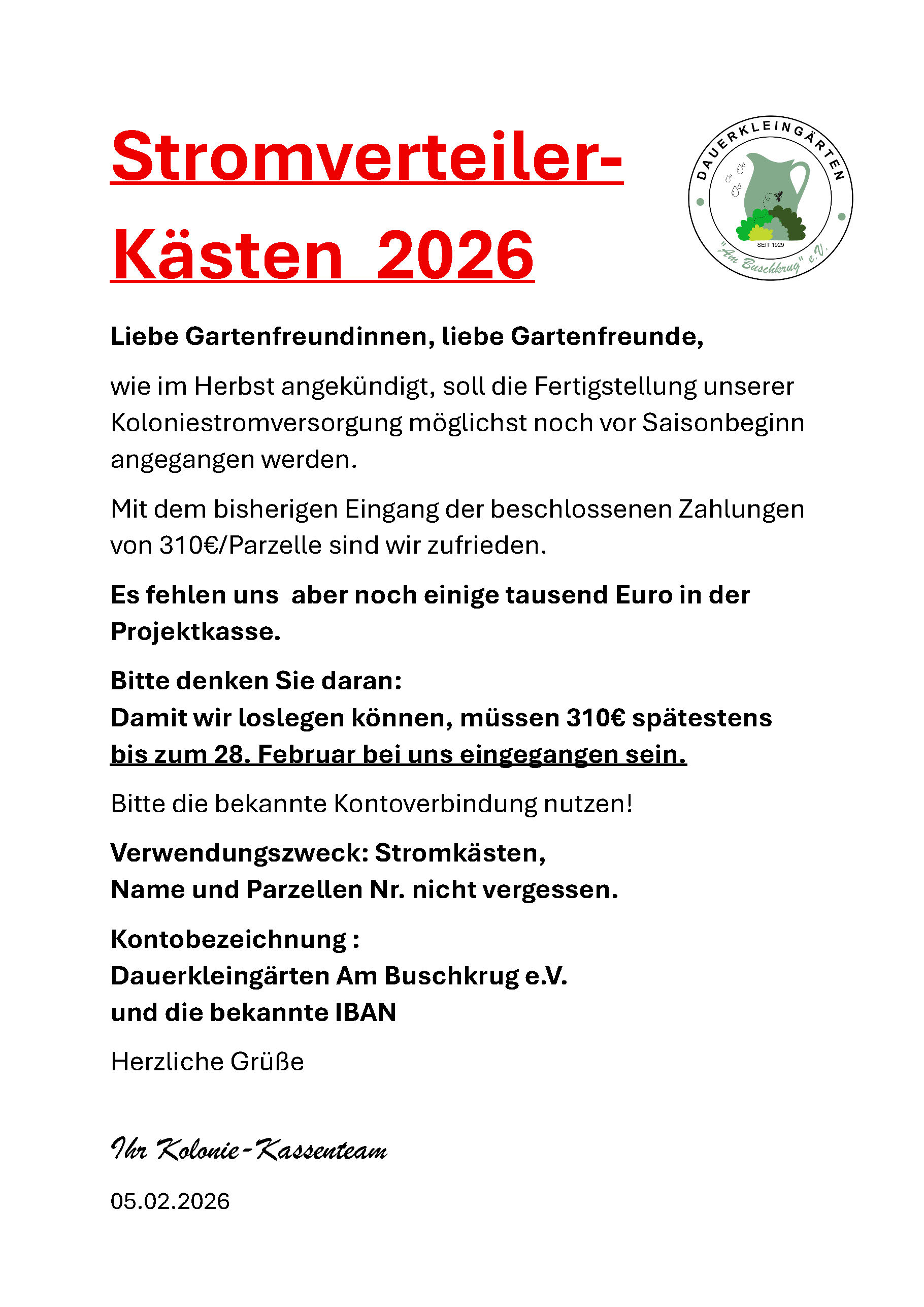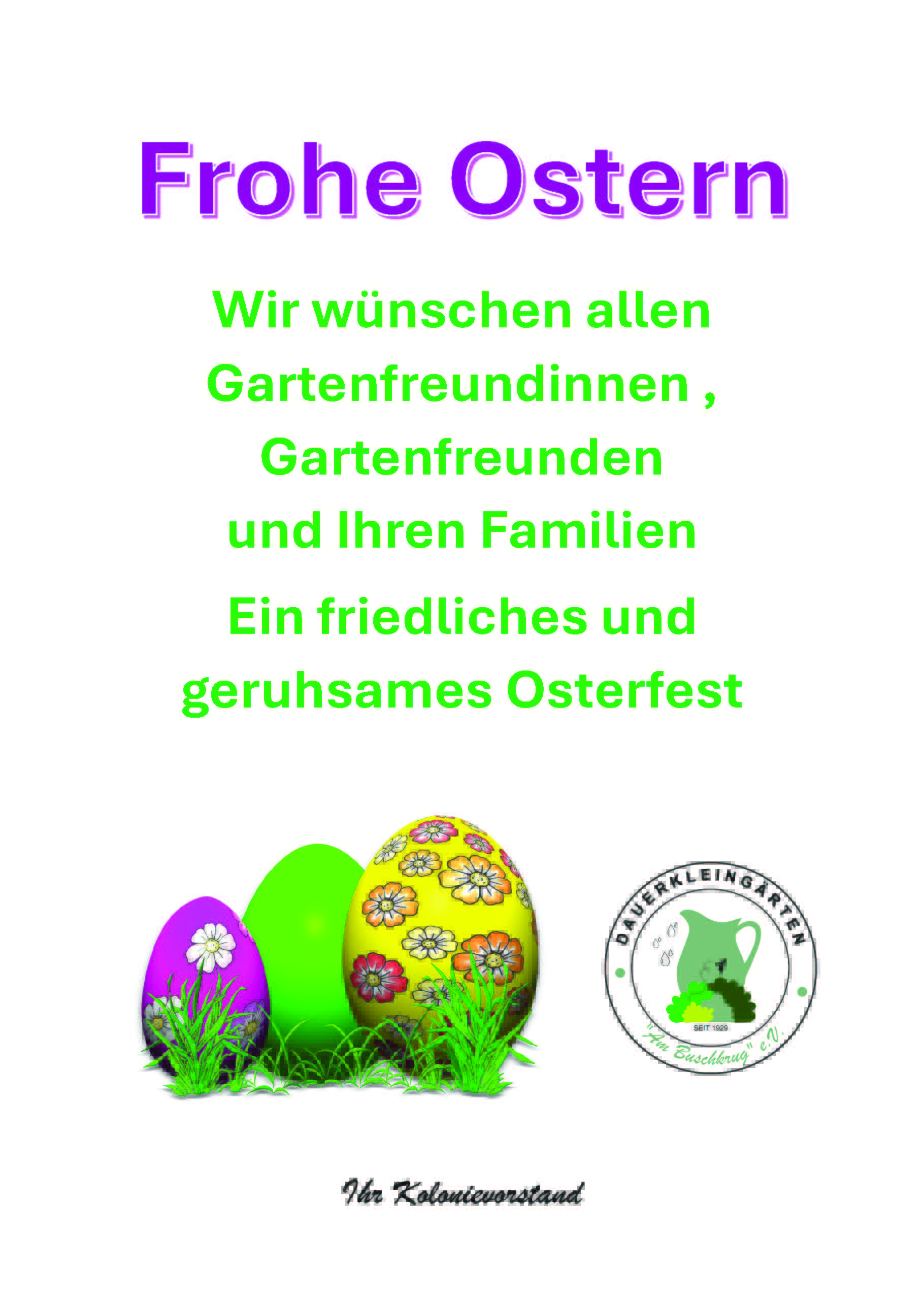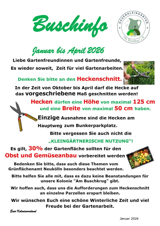 Sie erreichen den Vorstand ausschließlich per E-Mail an: kga@kolonieambuschkrug.de