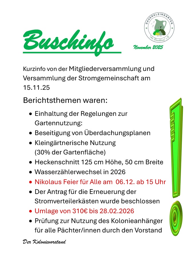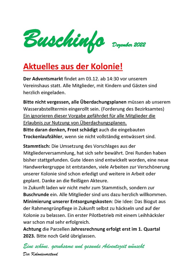 Hier finden Sie Buschinfos, Aushänge und andere Informationen aus der Vergangenheit.