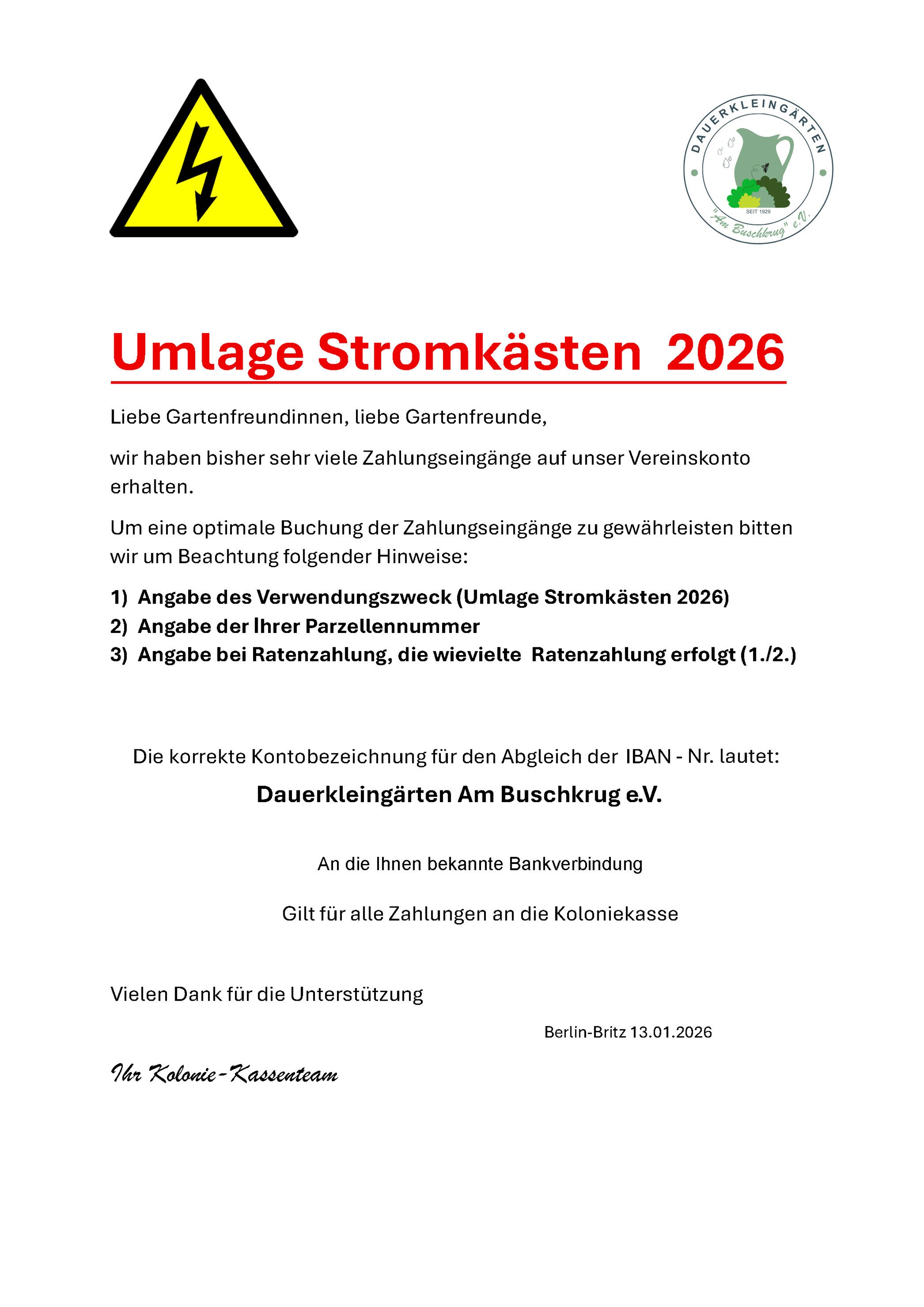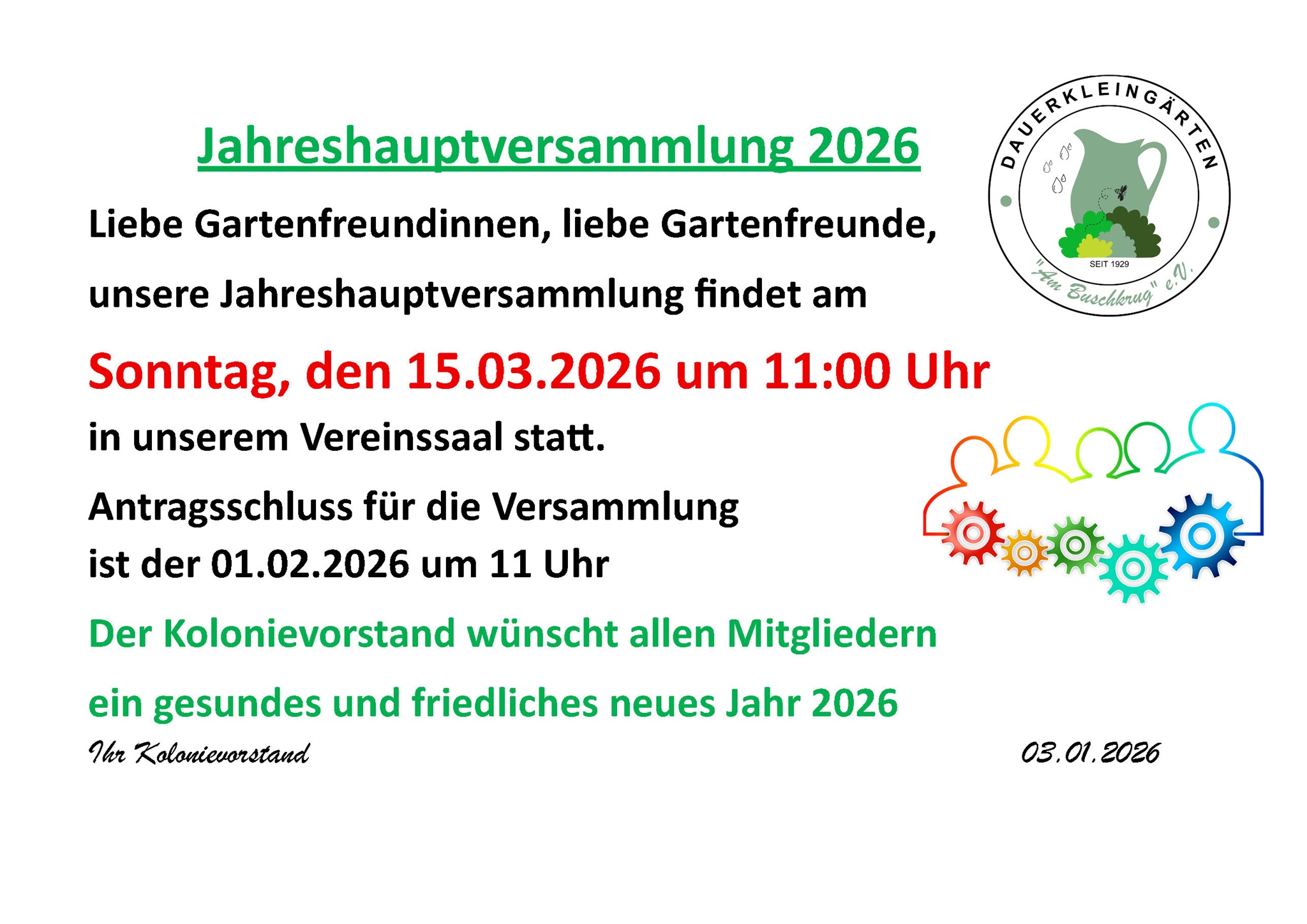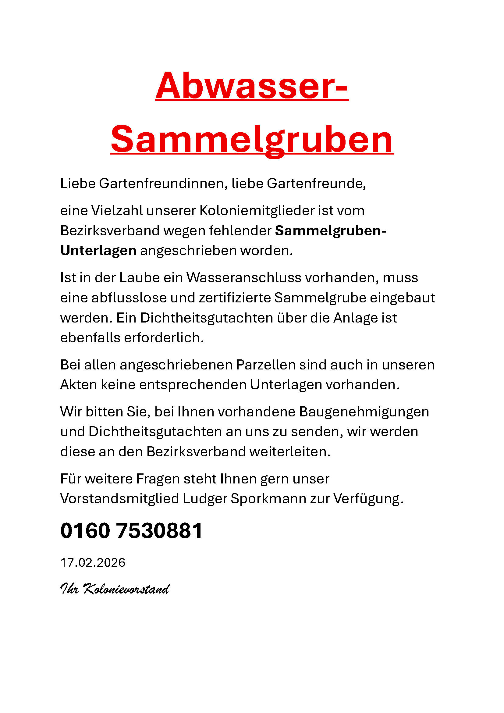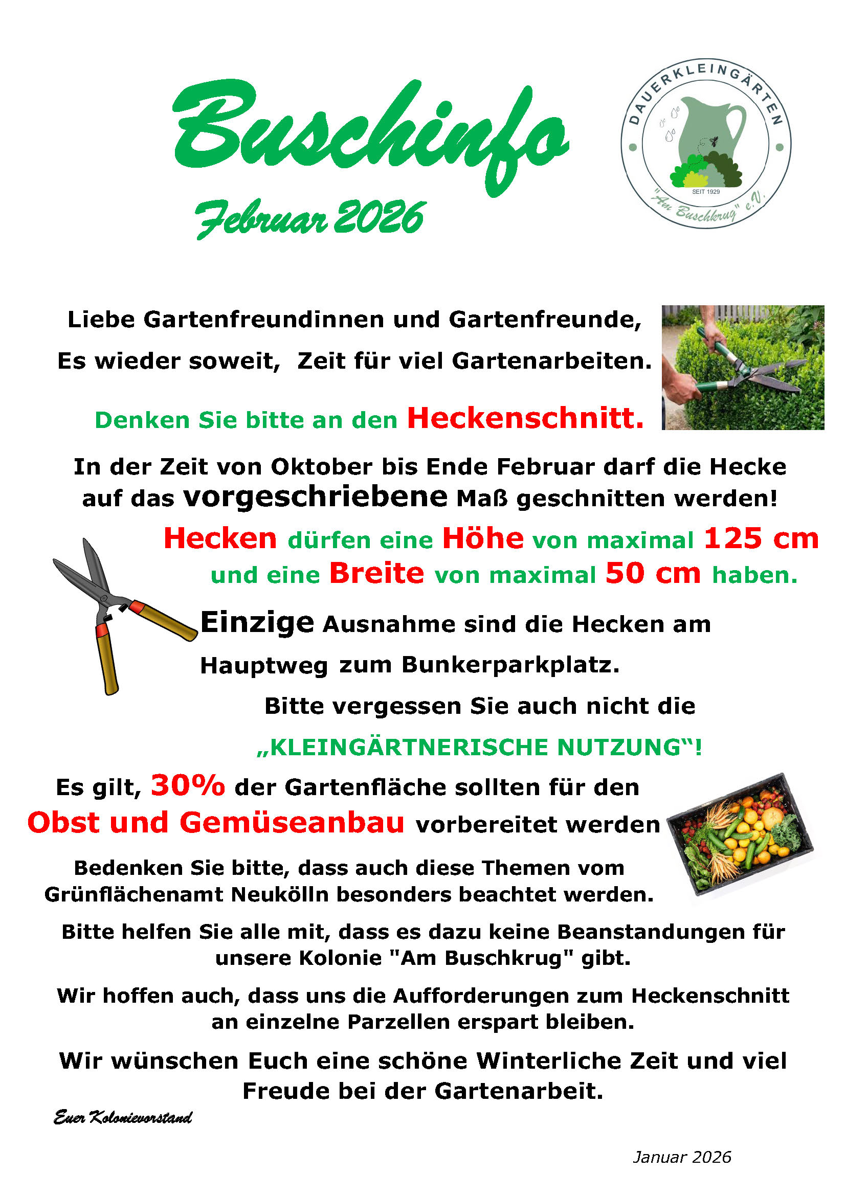 Sie erreichen den Vorstand ausschließlich per E-Mail an: kga@kolonieambuschkrug.de